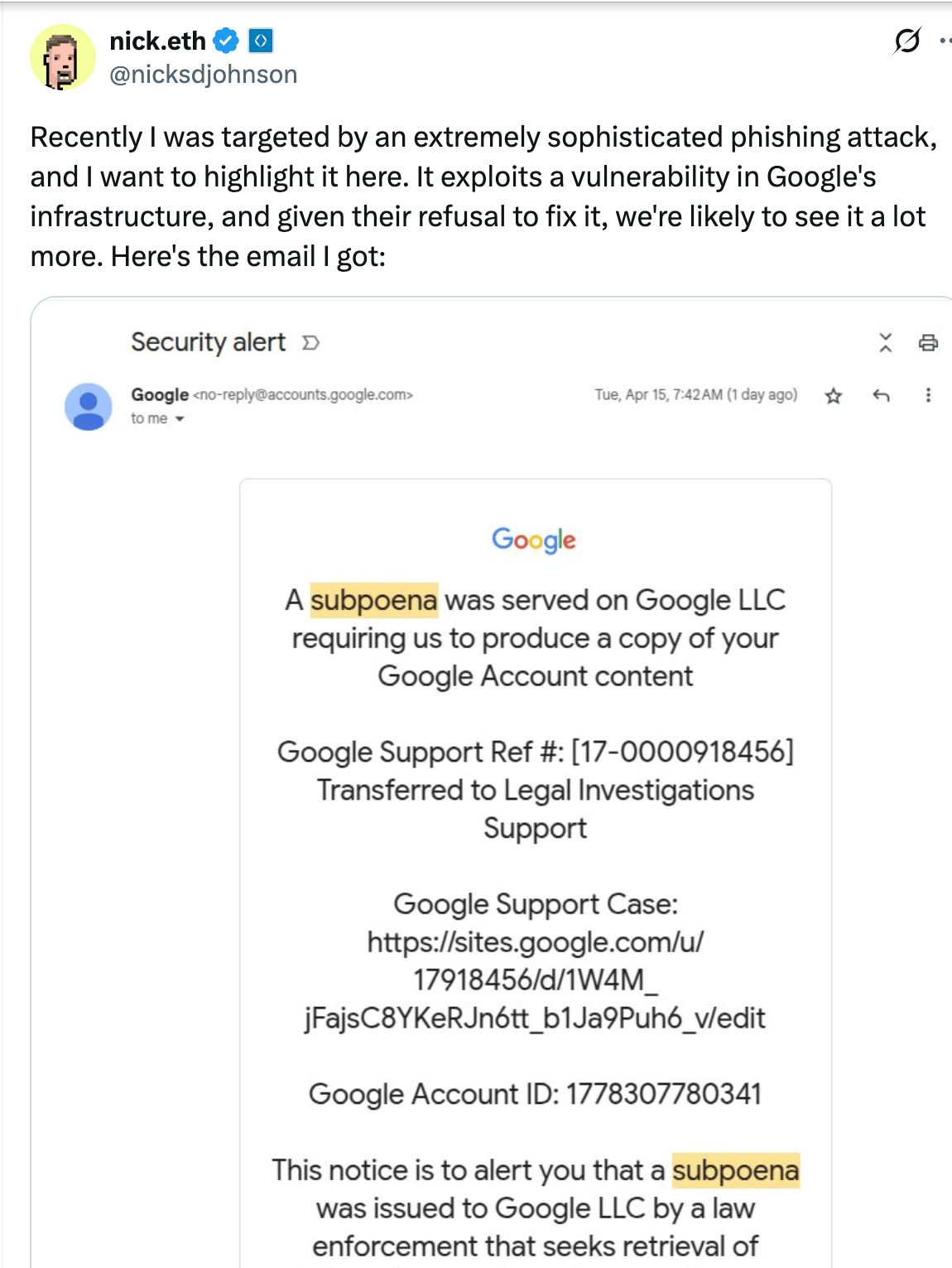 The articles outline how a cryptocurrency professional (who would definitely be savvy in such cybersecurity matters), almost got sucked in by a Gmail phishing scam.