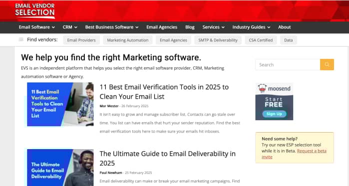 Email Vendor Selection: Founded by Jordie van Rijn in 2009, this website provides in depth reviews of several email platforms. Its findings are triple reviewed and supported by community experts.