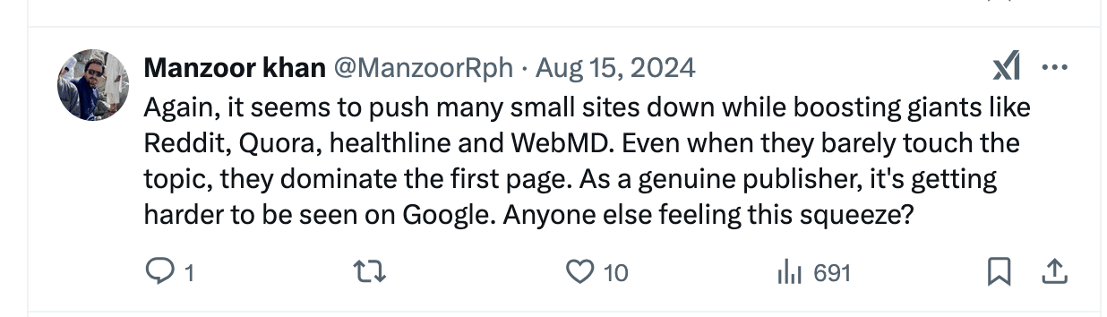While Google has emphasized its desire for helpful content, what is not said out loud is that Google is now relying more on its (currently experimental) AI Overviews tool. Its searches also favour websites such as Reddit and Quora, which now come up on the first page.
